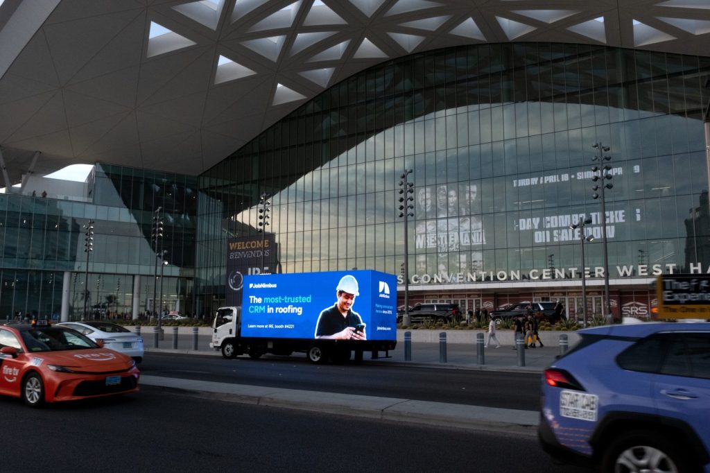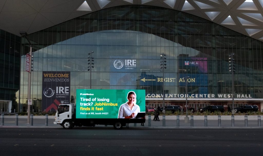 Las Vegas is home to some of the most competitive trade shows in the country, and standing out during a major event takes more than a great booth design. During the International Roofing Expo (IRE), JobNimbus leveraged mobile digital billboard advertising to increase visibility and build brand awareness during the expo.